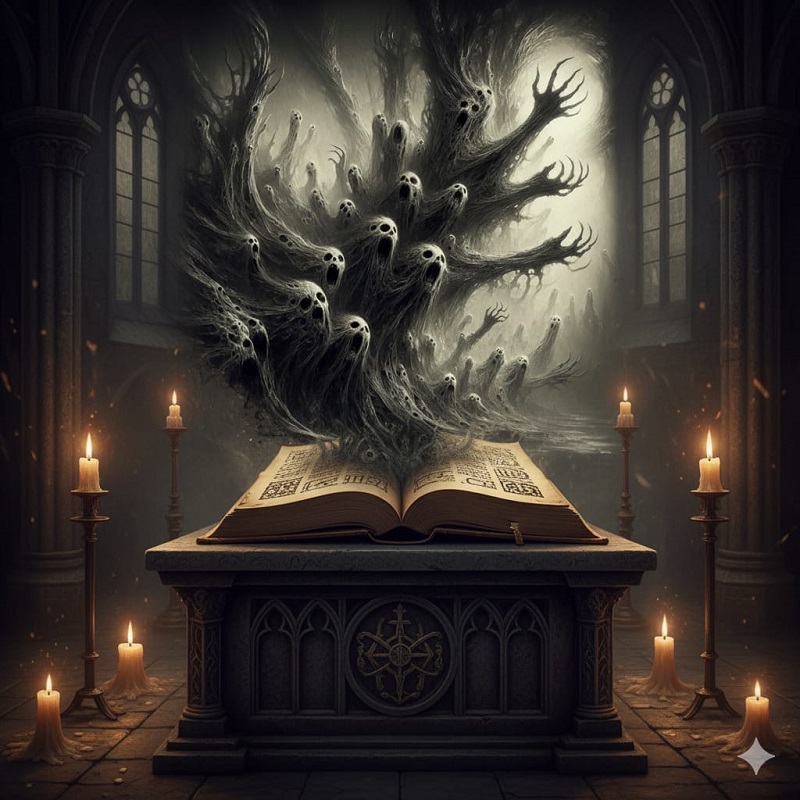 E para ajudá-lo a identificar essas listas, você verá o Codex Maleficus na foto destaque da publicação. A imagem foi gerada por IA, a partir de descrições achadas na internet, já que, no século XII, a Inquisição ordenou a destruição de tal objeto. Se tal livro foi obliterado não sabemos, mas não existem registros dele após esse período.